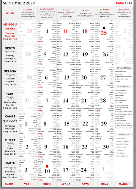 Kalender Bali September 2022 Lengkap